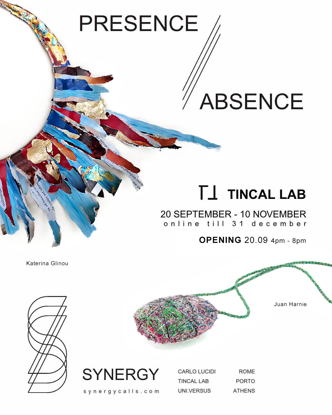 Presence /// Absence international collective exhibition, by SYNERGY, opened simultaneously in September of 2025 across the three locations. Tincal lab was happy to present 17 jewelers that explore this dichotomy through different approaches and materials.